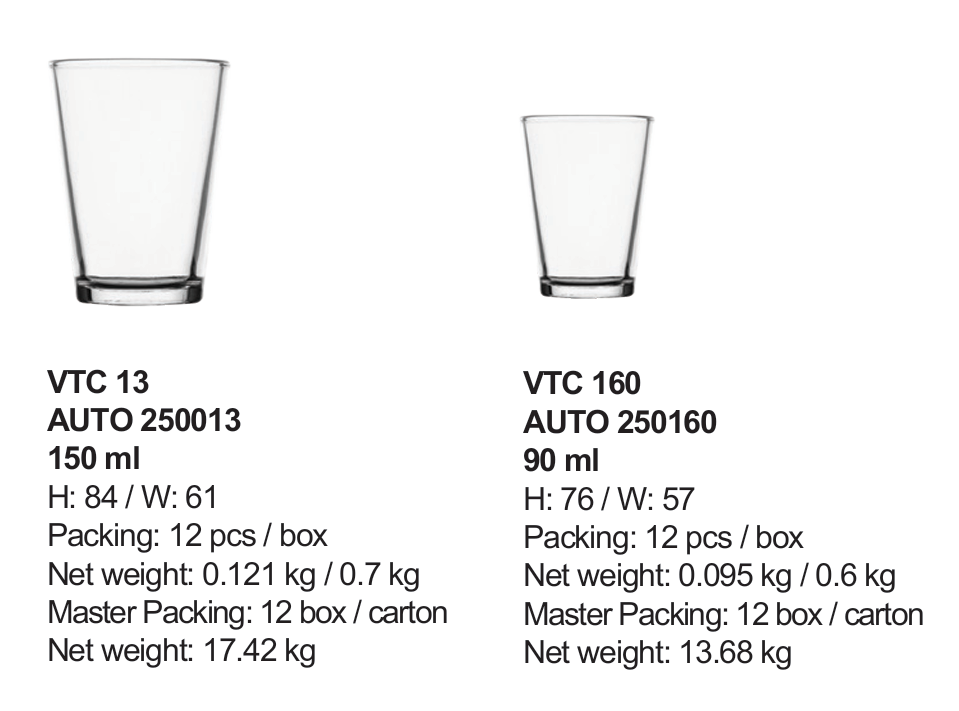 | VTC 13 | Ø: 6.1cm - 150ml - Cao: 8.4cm - 144 Cái/Thùng - 12 Cái/Hộp |
