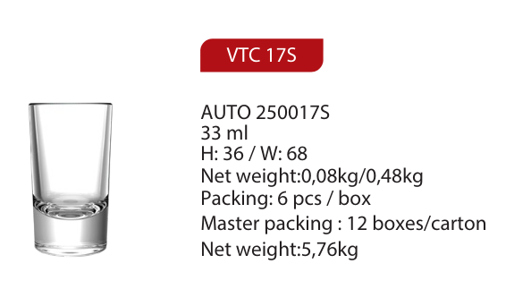 | VTC 17S | Ø: 3.6cm - 33ml - Cao: 6.8cm - 72 Cái/Thùng - 6 Cái/Hộp |