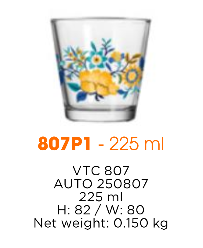 | VTC 807 INCT | Ø: 8cm - 225ml - Cao: 8.2cm - 72 Cái/Thùng - 6 Cái/Hộp |
