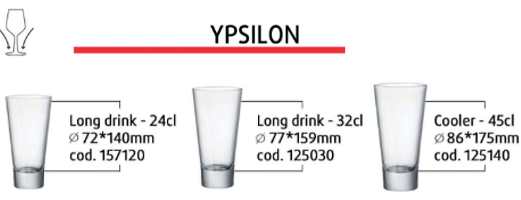 Ly thủy tinh Ypsilon Với dung tích khá đa dạng, các sản phẩm thuộc dòng ly Ypsilon có thể đáp ứng hầu hết các nhu cầu phục vụ: