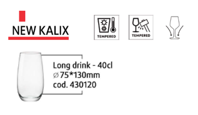 Dòng sản phẩm New Kalix của thương hiệu Bormioli Rocco – sự lựa chọn thông minh cho nhà hàng, khách sạn, quán bar, café,… Những nơi có tần suất sử dụng ly thủy tinh thường xuyên, hoặc các buổi tiệc buffe thường xuyên xảy ra sự va chạm,… cũng sử dụng được.