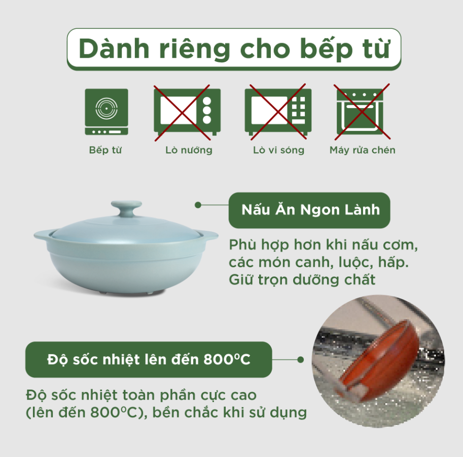 - Nấu chín thức ăn bằng cơ chế phát ra tia hồng ngoại nên hầm nhanh mềm, tạo rất ít váng bọt nên nước trong và thơm hơn, giúp tiết kiệm thời gian và nhiên liệu.