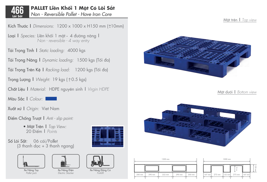 Pallet Liền Khối 1 Mặt Có Lõi Sắt