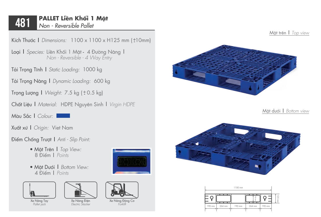 Loại: Liền Khối 1 Mặt – 4 Đường Nâng
