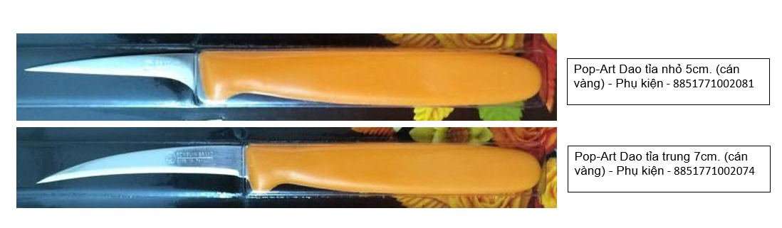 – Dao tỉa (cán vàng) được dùng để cắt tỉa các loại rau củ quả để trình bày trang trí, được sử dụng phổ biến rộng rãi trong gia đình, hàng quán và các nhà hàng ẩm thực, được mọi người tin dùng.