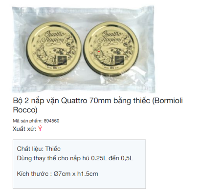 Bộ 2 nắp vặn Quattro bằng thiếc có công dụng cực kỳ đặc biệt: tạo môi trường chân không bên trong hũ, giúp bảo quản thực phẩm đã qua chế biến trên 60 ngày ở nhiệt độ thường.