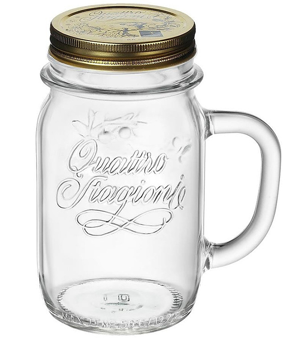 Phần thân hũ cách điệu với logo Quattro Stagioni in nổi vừa đẹp mắt vừa có công dụng chống trơn trượt và làm nổi bật sự tinh tế của chất liệu thủy tinh.