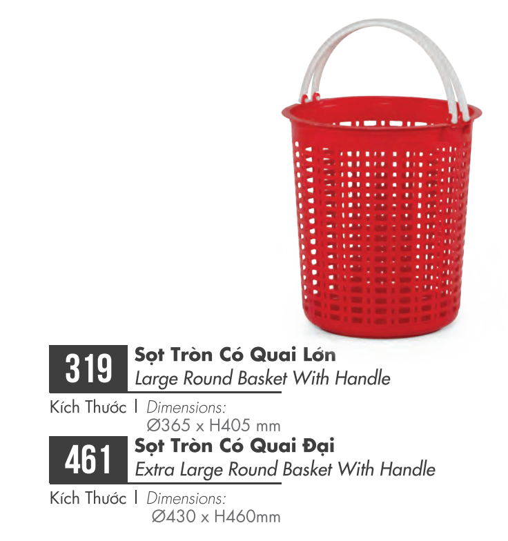 - Sọt Tròn Có Quai Đại (461): Ø430 x H460 mm