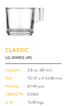| LG 304903 49 | Ø: 5.7cm - 80ml - Cao: 5.38cm - 144 Cái/Thùng - 6 Cái/Hộp - 17Gr. |