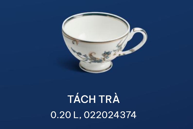 Sản phẩm có lối thiết kế tinh tế, trang nhã. Trên nền sứ sáng bóng, các họa tiết, hoa văn được trang trí bằng vàng 24k trên tông xanh cobalt (blue Huế) đặc trưng, mang ý nghĩa thịnh vượng và sang trọng.