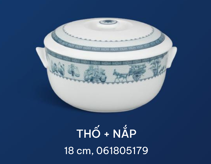 Bức tranh làng quê hiện ra sống động như gom hết thảy không gian, cảnh vật, con người… trên những cánh đồng, những mái nhà tranh, bến nước, chợ quê … vào trong từng sản phẩm của bộ hoa văn Thôn Dã. Với tâm huyết, vốn văn hoá sâu rộng và tài hoa của người nghệ nhân, Minh Long đã giữ lại những không gian thanh bình, đầy văn hoá ấy của dân tộc qua từng sản phẩm. Sử dụng màu xanh cobalt trên nền sứ trắng giúp vẽ lên bức hoạ đồng quê với từng đường nét sắc sảo, sinh động.