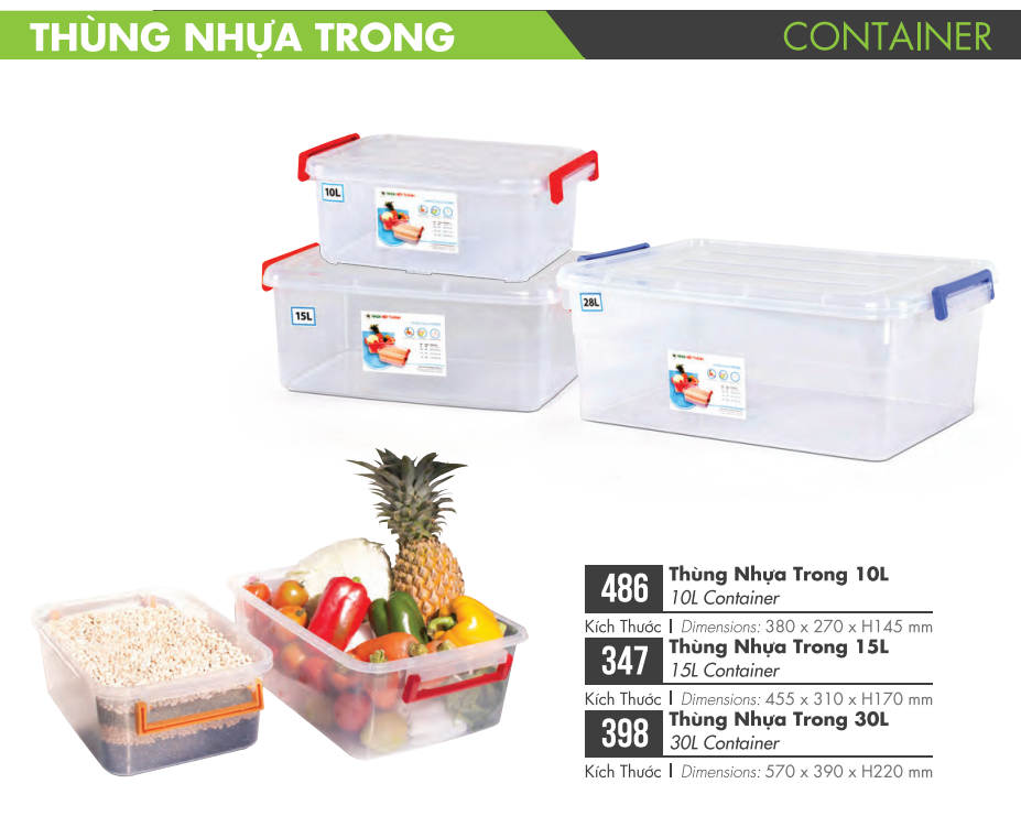 - Thùng Nhựa Trong 15L (347): 455 x 310 x H170 mm