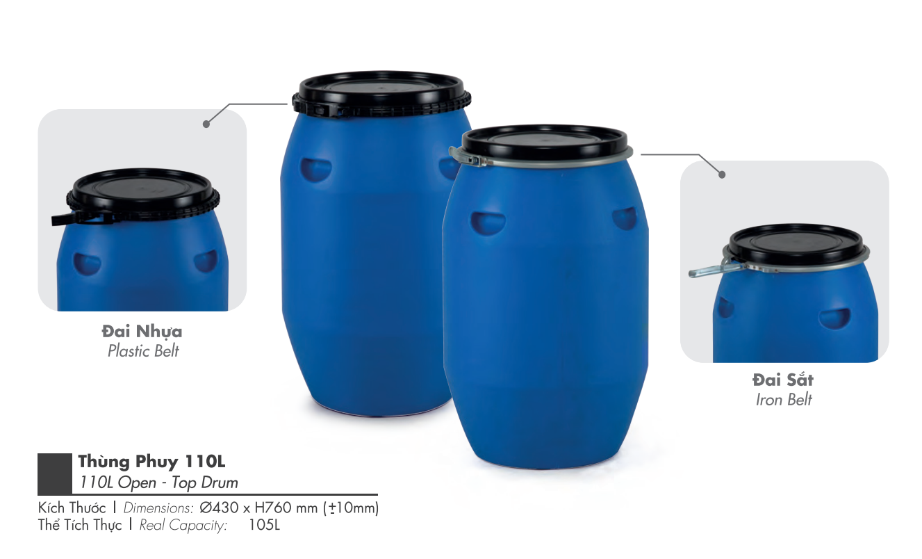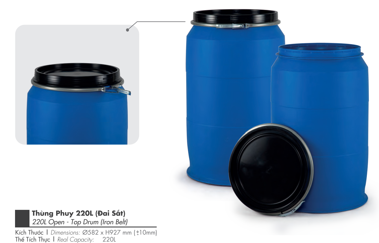 - Kích thước có nắp: Ø582 x H945 mm (+/- 10mm)