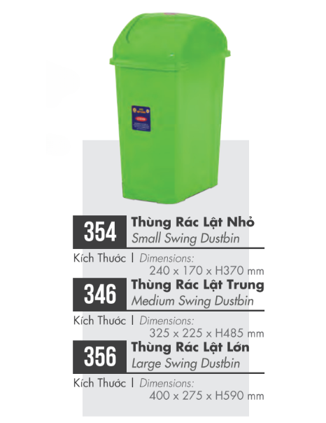- Thùng Rác Lật Nhỏ (354): 240 x 170 x H370 mm