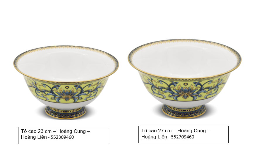 Hoàng Cung là dãy sản phẩm cao cấp của Minh Long, mang phong cách cung đình, vương tộc nhưng vẫn đậm đà hình ảnh văn hóa dân gian Việt Nam. Sự sáng tạo nghệ thuật thể hiện ở từng nét vẽ có tính thẩm mỹ riêng tạo nên phần hồn, chiều sâu văn hóa của từng sản phẩm. Hoàng Cung Hoàng Liên có hình ảnh chủ đạo từ hoa sen cách điệu phối với các đường nét hoàng cung trên nền men vàng quý tộc. Sản phẩm được mạ vàng 24k bao quanh đường viền, tay cầm, vành nắp tạo nên đẳng cấp vương giả. Bộ sản phẩm rất phù hợp sử dụng trong các gia đình muốn thể hiện phong cách hoàng gia, quý phái.