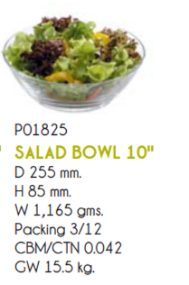 | OC 1P01825 | Ø: 25.5cm - ØĐáy: 15cm - ØMiệng: 25.5cm - Cao: 8.5cm - 12 Cái/Thùng - 3 Cái/Hộp |