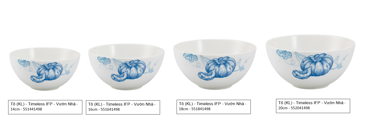 Lấy ý tưởng từ những hình ảnh của vườn quê thân thuộc, Vườn Nhà tái hiện sống động bức tranh khung cảnh khu vườn quê vào mùa đơm hoa, kết trái với vẻ đẹp thân thuộc, mộc mạc và thanh bình. Trên nền sứ trắng thanh khiết, hình ảnh những quả bí ngô to tròn, những bông hoa đang bung nở được phác họa một cách chân thực, tinh tế. Khéo léo chọn màu xanh cobalt để tô vẽ lên sứ trắng là cách những nghệ nhân Minh Long tạo điểm nhấn khác biệt và mang đến sự đột phá mới lạ, độc đáo cho bộ sản phẩm.