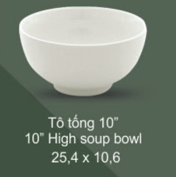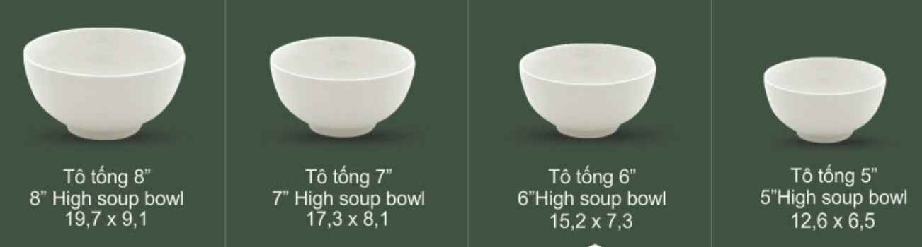 Tô sứ tống đựng canh – 5-6-7-8-10 inch có đầy đủ kích cỡ theo nhu cầu sử dụng. Khả năng giữ nhiệt tốt nên giữ nóng thức ăn. Thiết kế đơn giản, phù hợp với mọi nhà Chi tiết sản phẩm