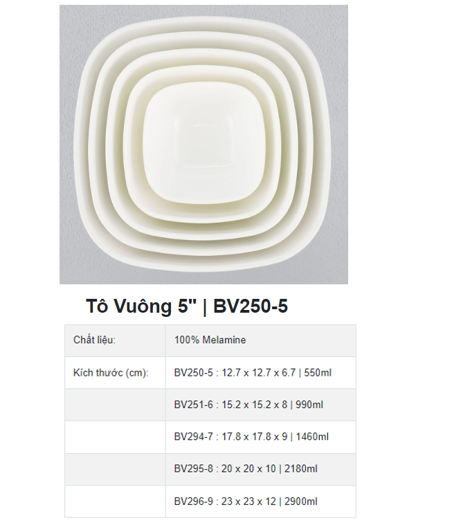 | BV250-5 Po | 550ml - Dài: 12.7cm - Rộng: 12.7cm - Cao: 6.7cm |