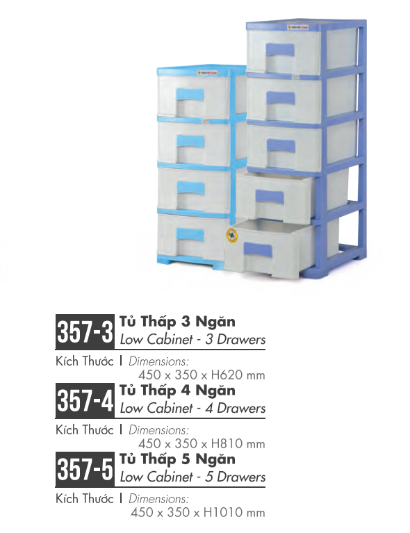 - Tủ Thấp 3 Tầng: 450 x 350 x H620 mm