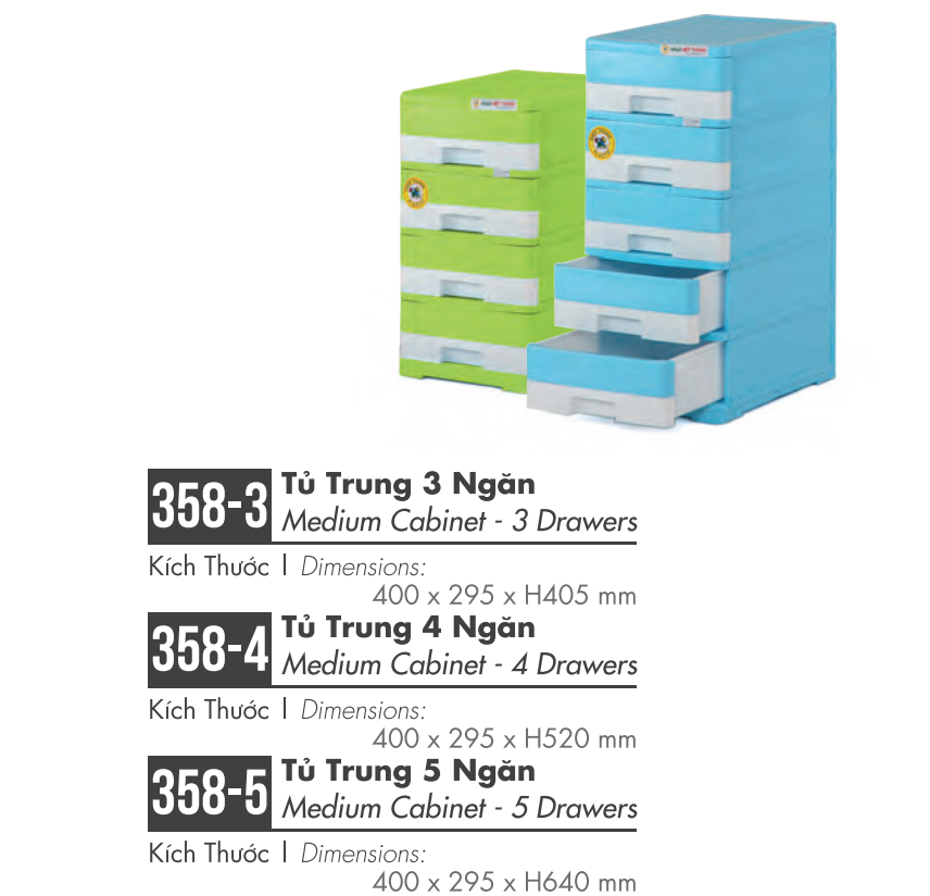 - Tủ Trung 3 Ngăn: 400 x 295 x H405 mm